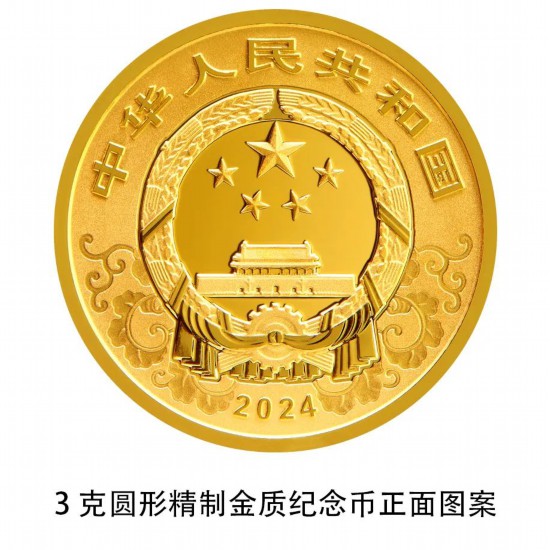 3克圆形金质纪念币为精制币,含纯金3克,直径18毫米,面额50元,成色99.9%,最大发行量150000枚。