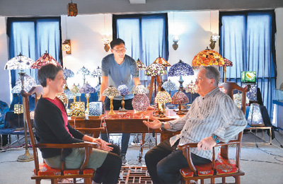 在兴西村的一家水晶店内,来自澳大利亚的客户正在选购水晶灯产品。